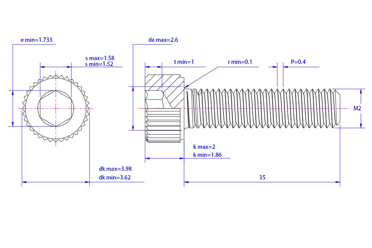 Hexagon-socket-knurled-heads-cap-screw-M2X35