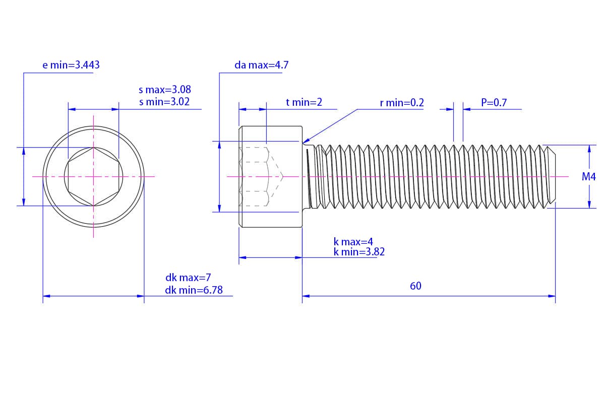 M4X60mm – 304 – A2-70 – Stainless steel – Hexagon socket cap screw