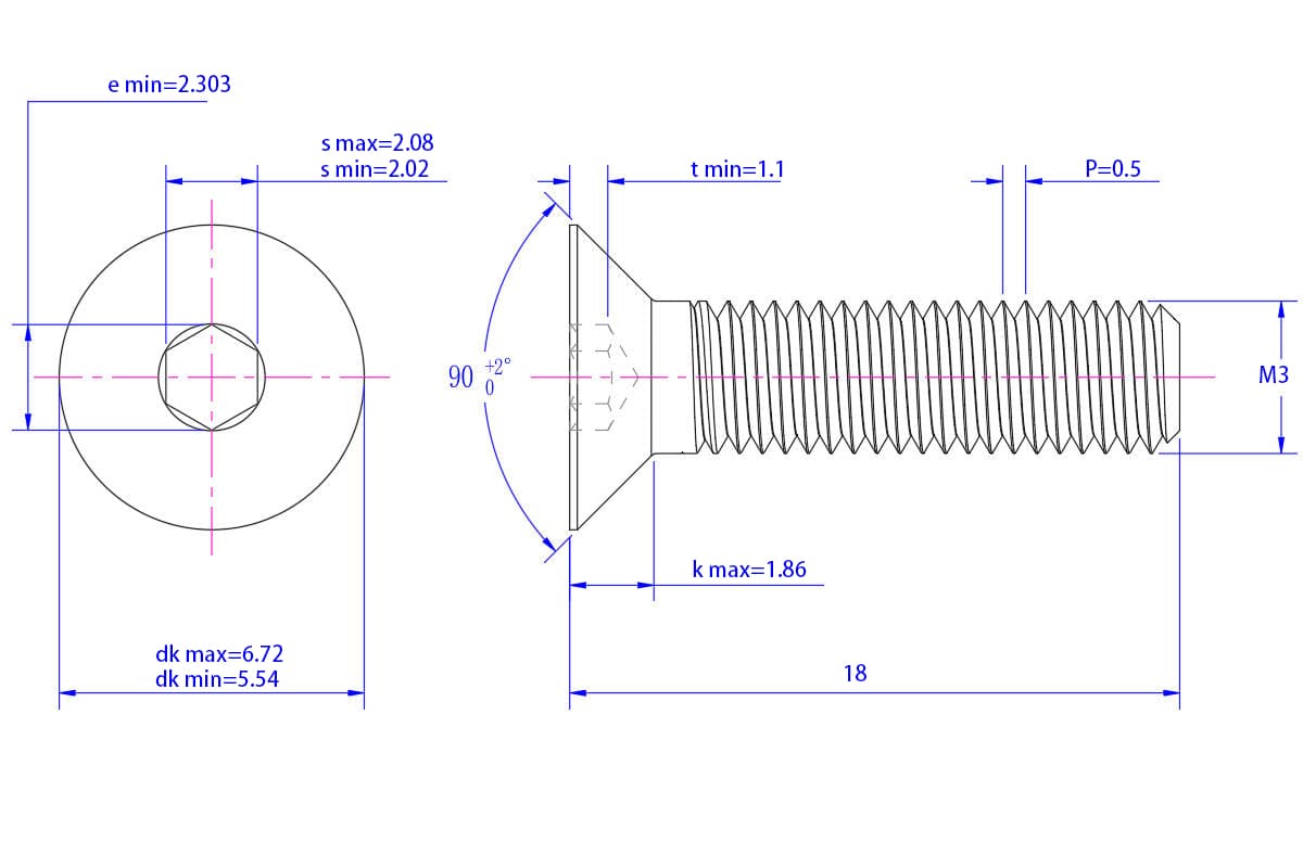 M3X18mm – A2-70 – 304 – Stainless steel – Hexagon socket countersunk head screw