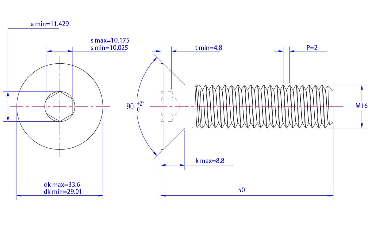 M16X50mm – 316 – Stainless steel – Hexagon socket countersunk head screw