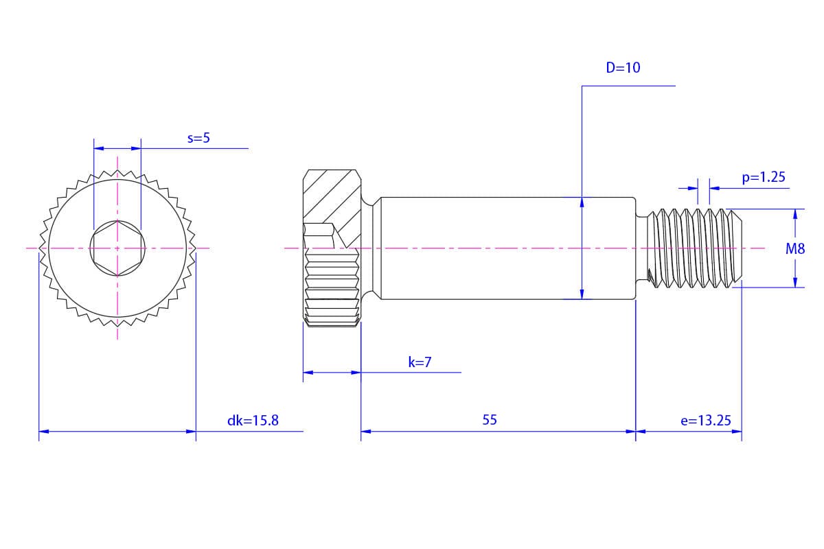 10xM8x55-Knurled-hexagon-socket-head-shoulder-screw