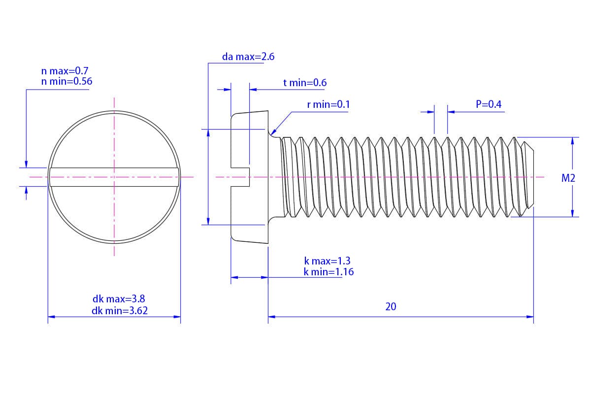 M2X20mm – 304 – Stainless steel – Slotted cheese head screw