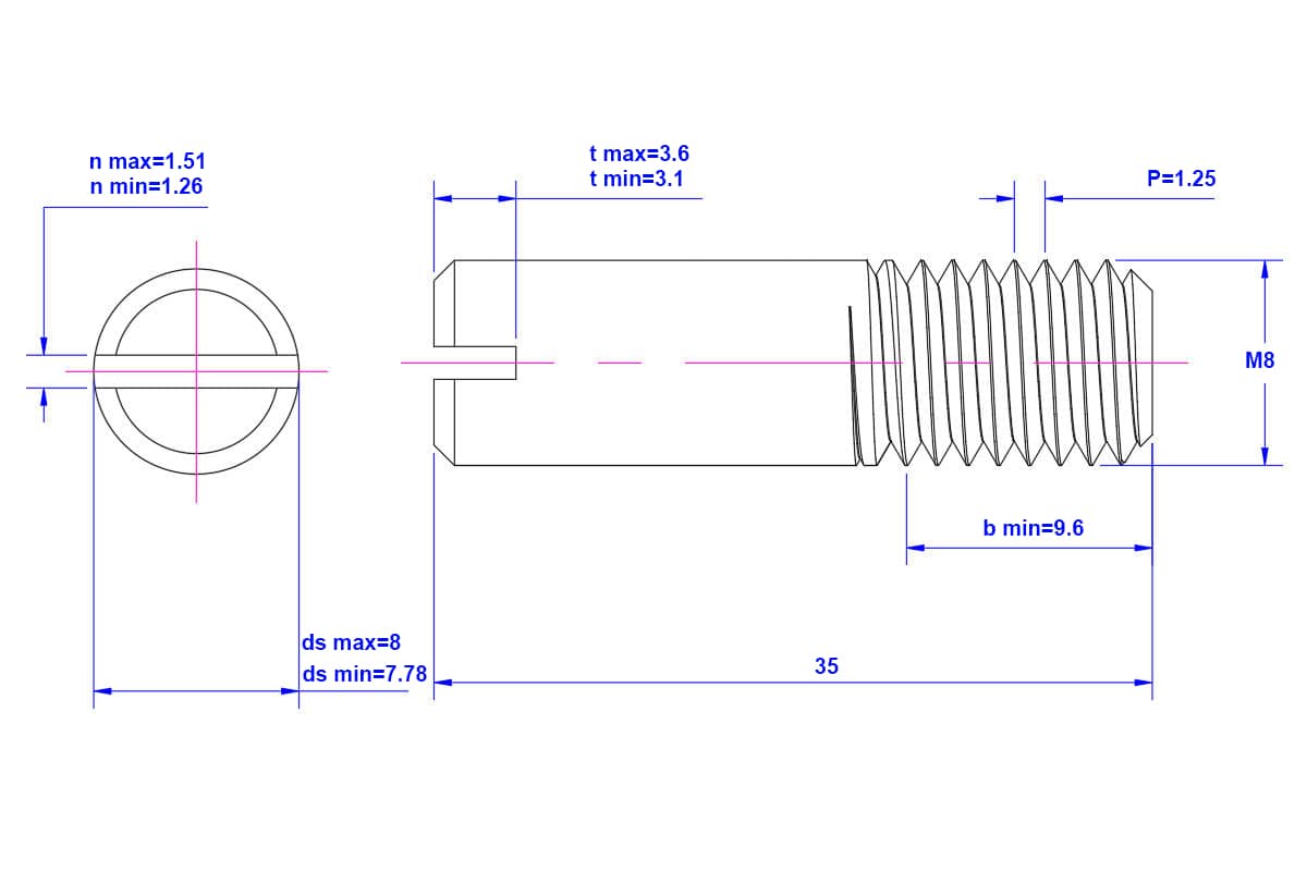 M8X35mm – 304 – Stainless Steel – Slotted headless screw