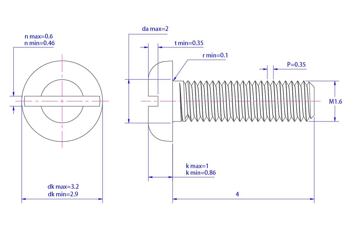 M1.6X4mm – 304 – Stainless Steel – Slotted pan head screw