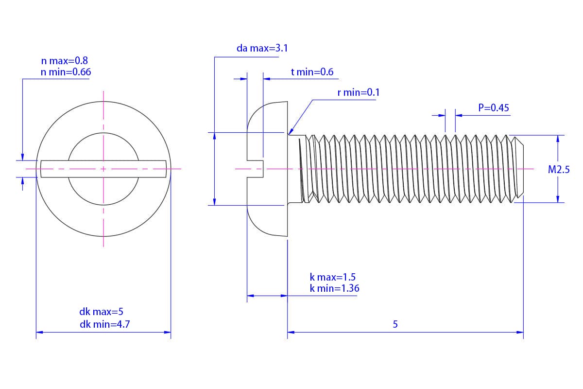 Home Shop Screw & bolt Slotted pan head screw Stainless Steel - Slotted pan head screw 304 - Stainless Steel - Slotted pan head screw M2.5X5mm – 304 – Stainless Steel – Slotted pan head screw