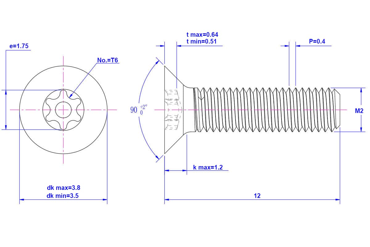 Tamper-resistant-Torx-countersunk-screw-M2X12