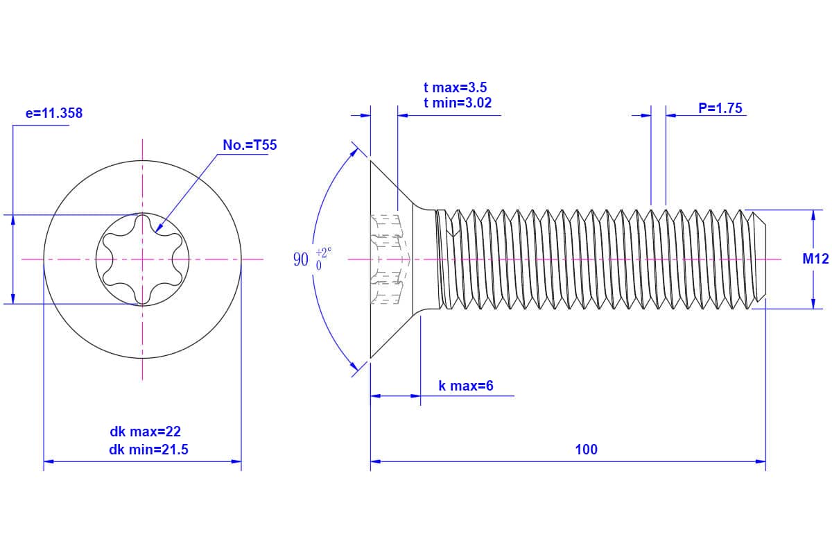 Torx-countersunk-screw-M12X100