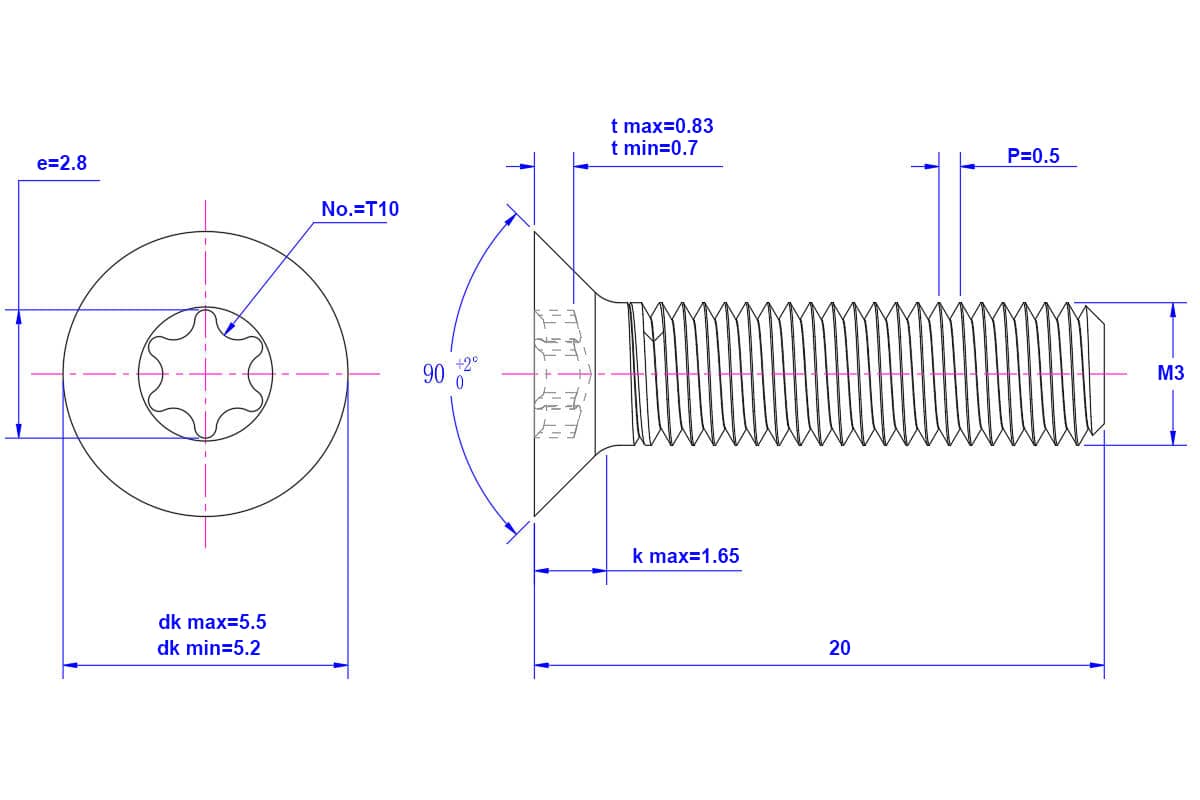 M3X20mm – 304 – Stainless Steel – Torx countersunk screw
