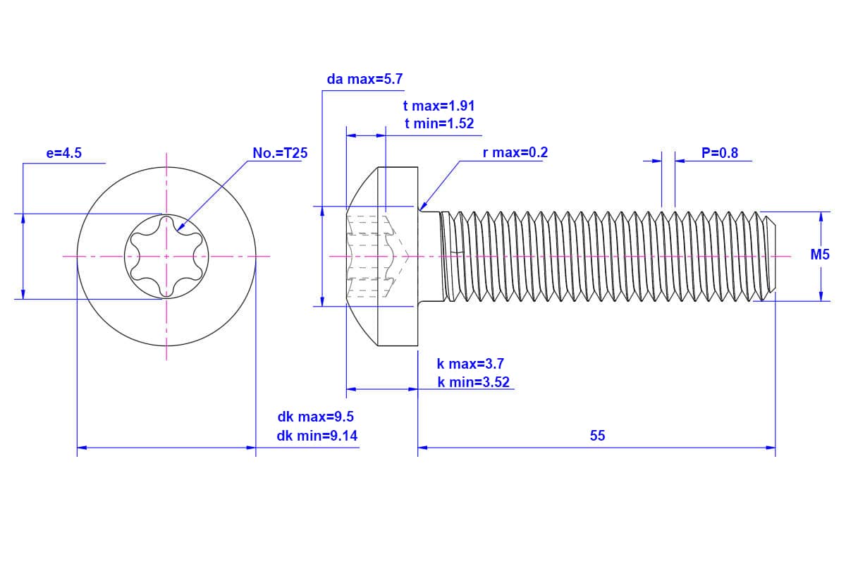 M5X55mm – 304 – Stainless Steel – Torx pan head screw