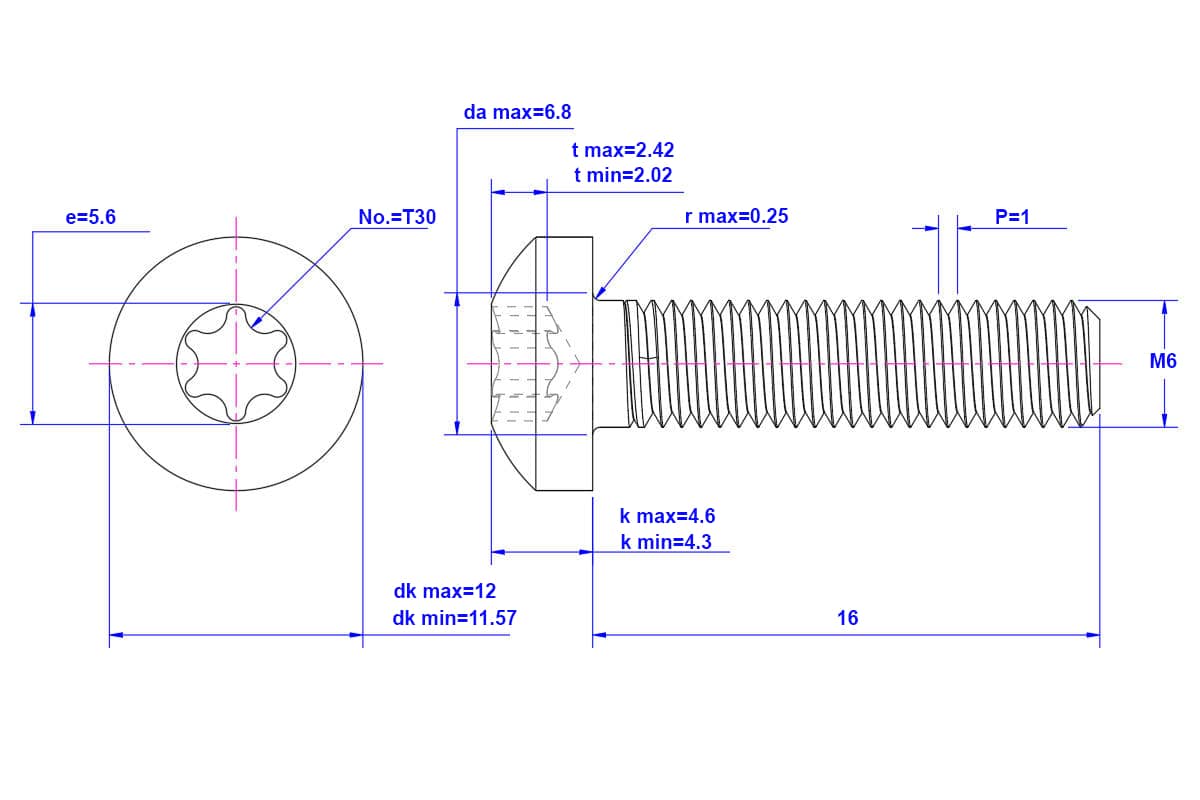 M6X16mm – 304 – Stainless Steel – Torx pan head screw