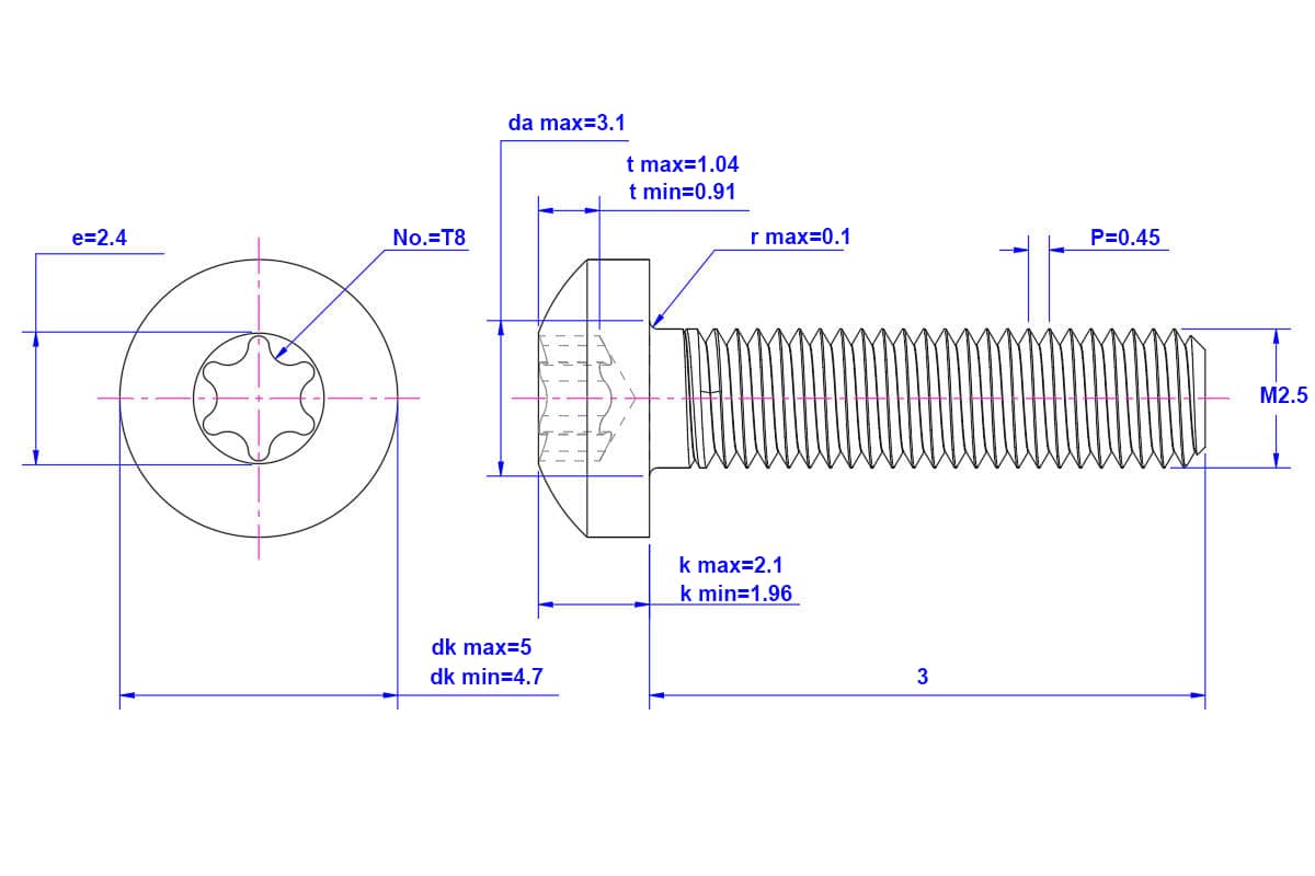 M2.5X3mm – 316 – Stainless Steel – Torx pan head screw