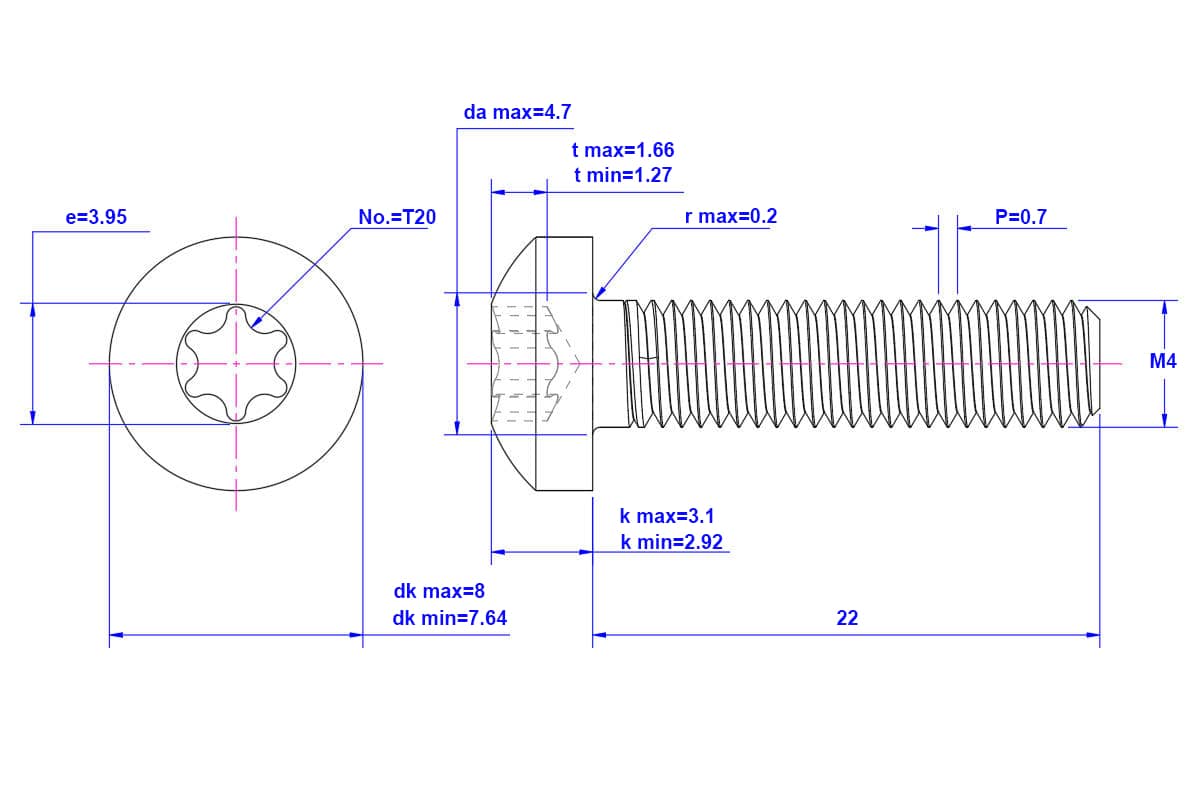 M4X22mm – 316 – Stainless Steel – Torx pan head screw