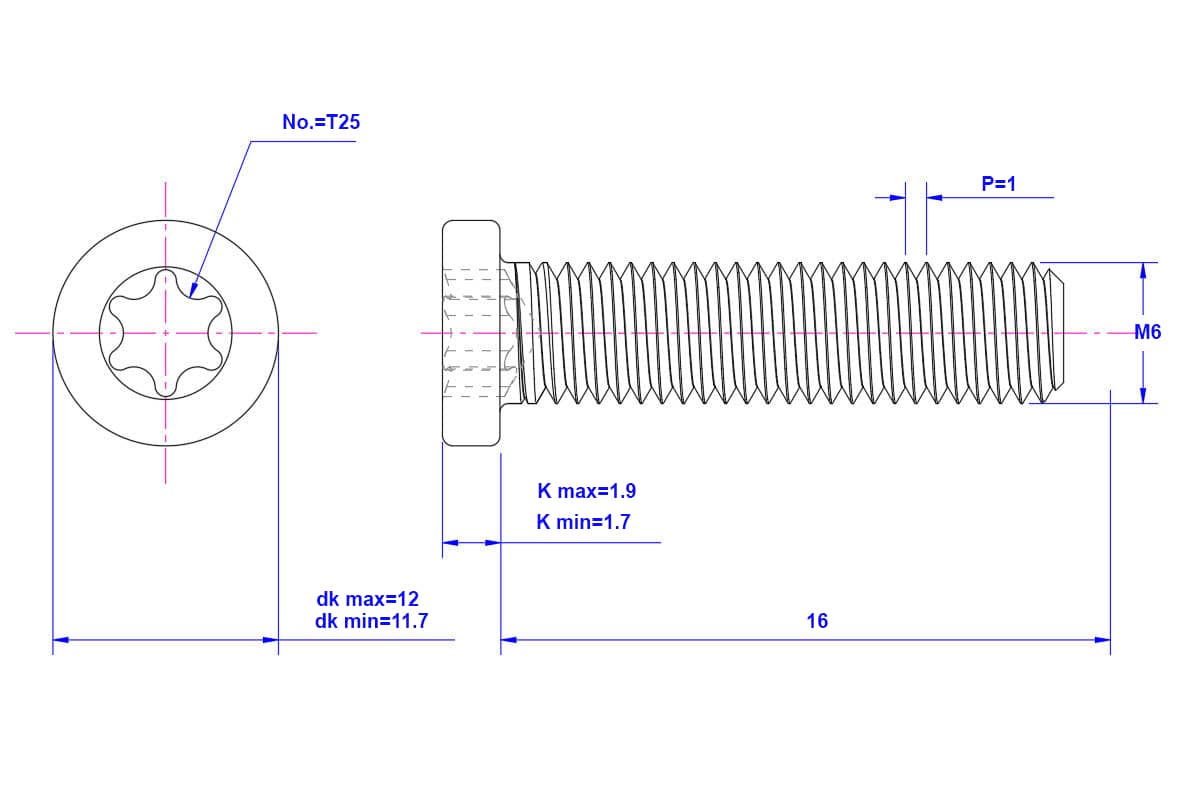 M6X16mm – 304 – Stainless Steel – Torx Ultra flat head screw