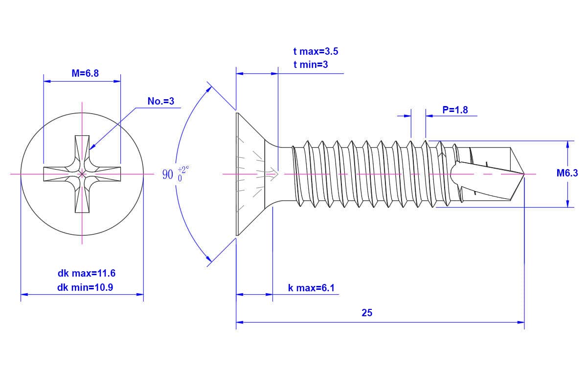 Cross-Recess-Countersunk-Self-Drilling-Screw-M6.3X25