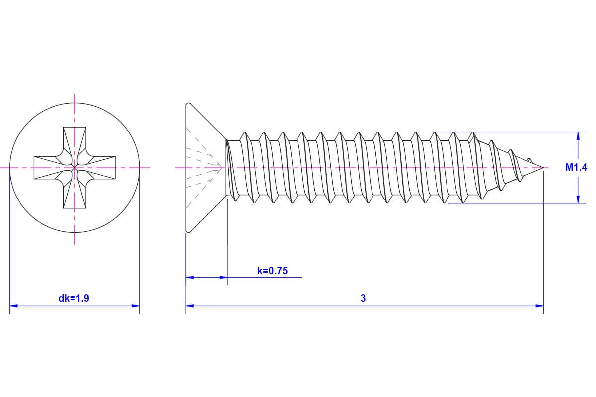 Cross-Recessed-Flat-Head-Self-Tapping-Screw-M1.4X3