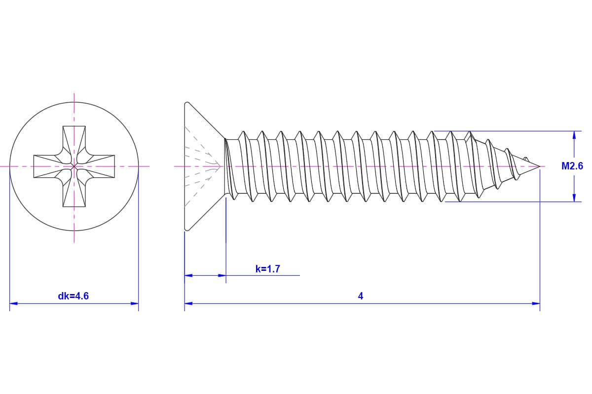 M2.6X4mm – 316 – Stainless Steel – Cross Recessed Flat Head Self-Tapping Screw