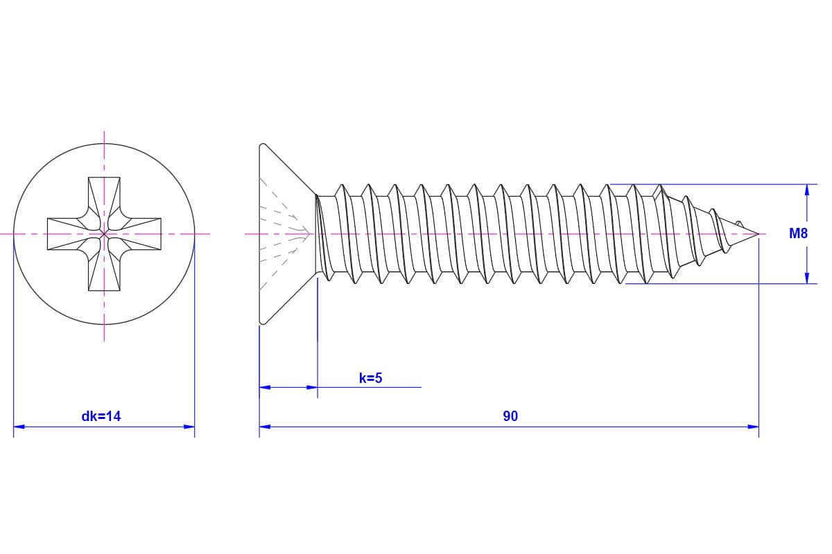 Cross-Recessed-Flat-Head-Self-Tapping-Screw-M8X90