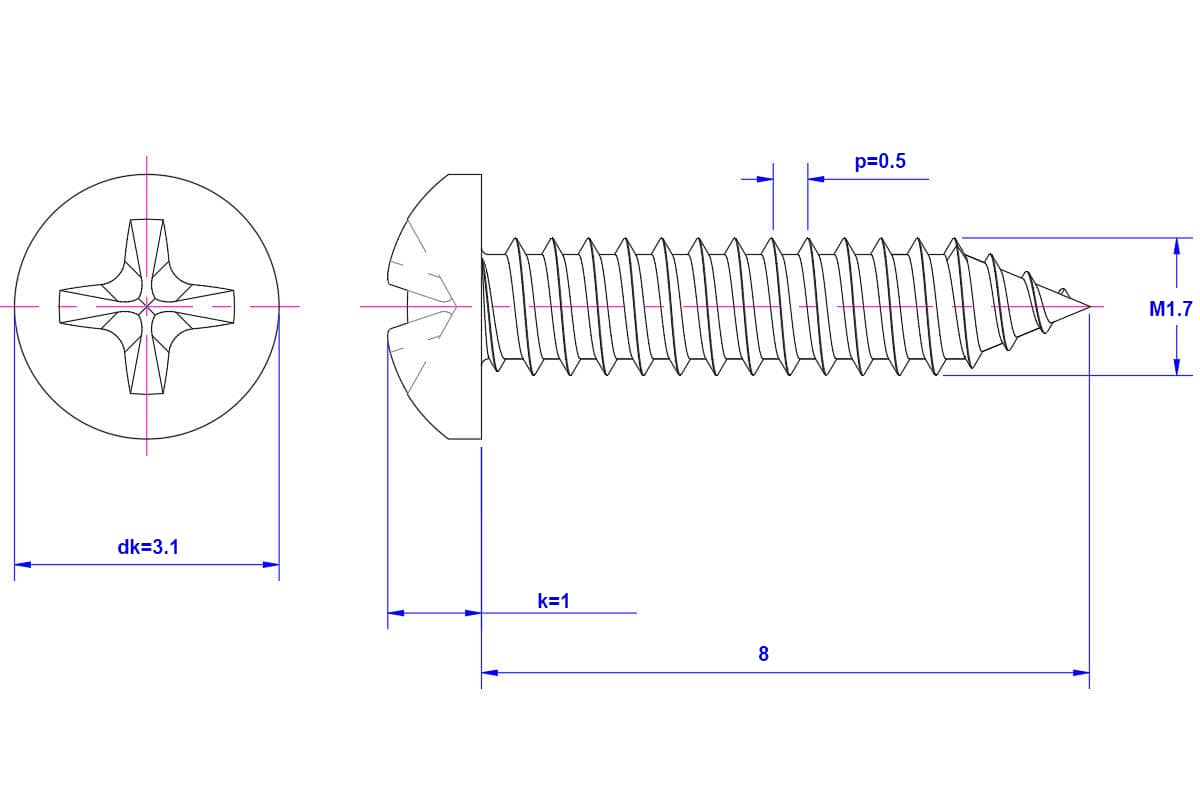Cross-Recessed-Pan-Head-Self-Tapping-Screw-M1.7X8