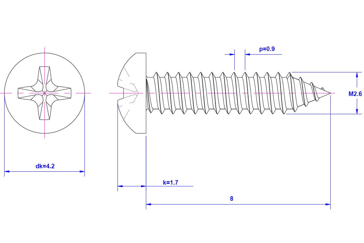 Cross-Recessed-Pan-Head-Self-Tapping-Screw-M2.6X8