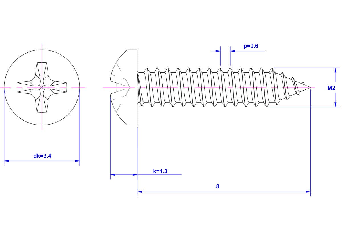 Cross-Recessed-Pan-Head-Self-Tapping-Screw-M2X8