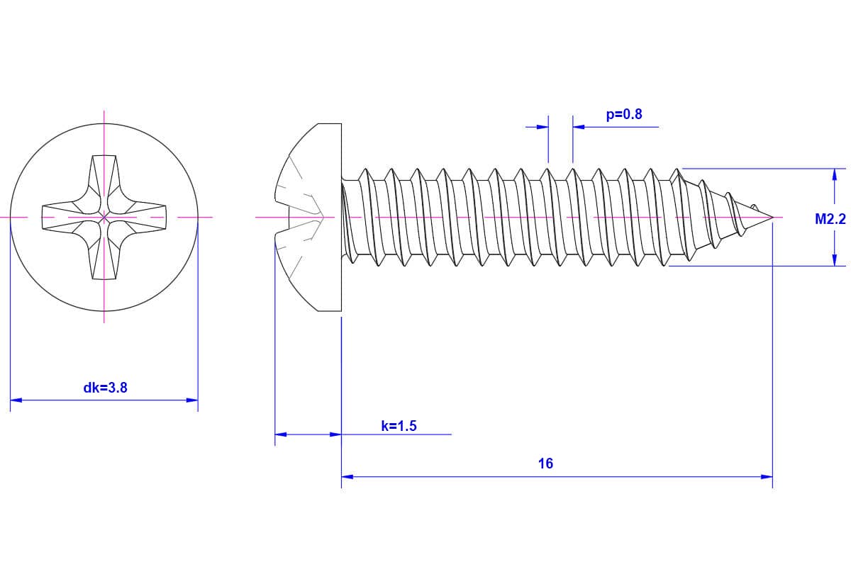 Home Shop Self-tapping screws Cross Recessed Pan Head Self-Tapping Screw 304 - Stainless Steel - Cross Recessed Pan Head Self-Tapping Screw M2.2X16mm – 304 – Stainless Steel – Cross Recessed Pan Head Self-Tapping Screw