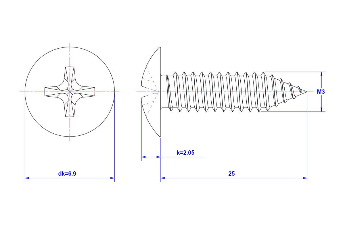 Cross-Recessed-Truss-Head-Self-Tapping-Screw-M3X25