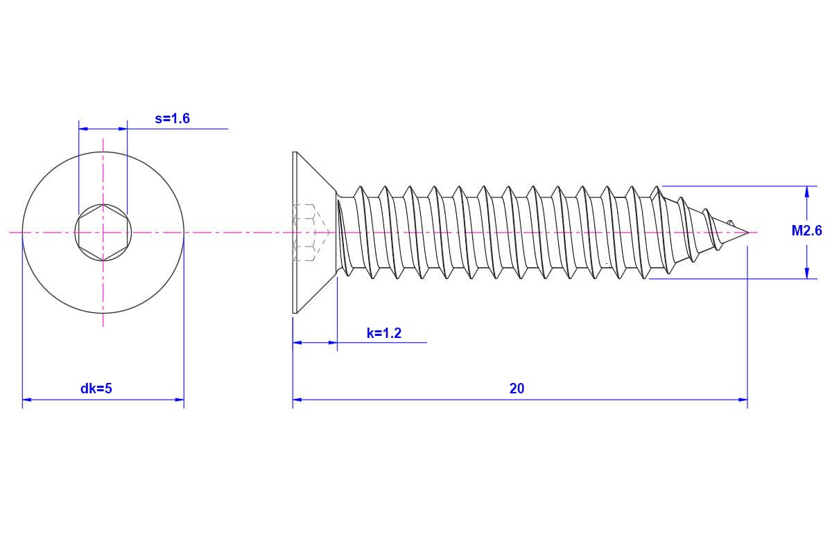 Hex-socket-countersunk-Self-Tapping-Screw-M2.6X20