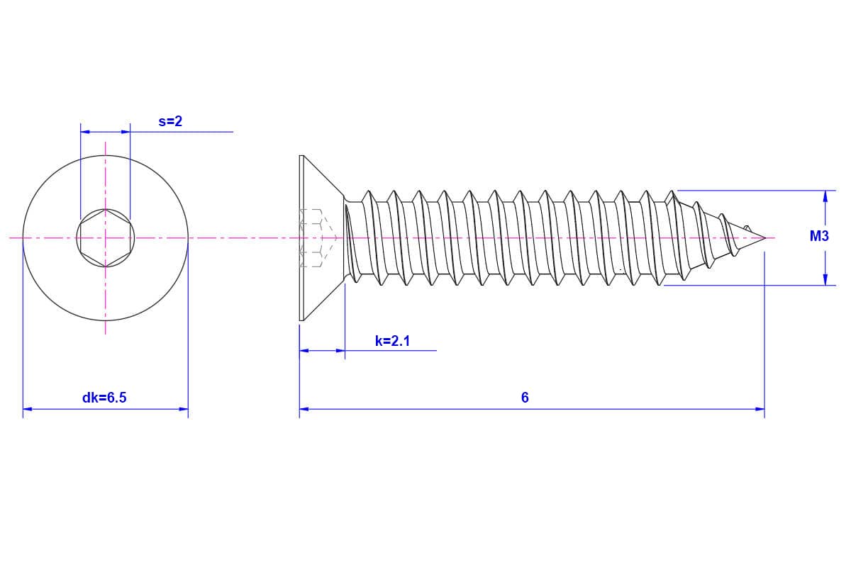 Hex-socket-countersunk-Self-Tapping-Screw-M3X6