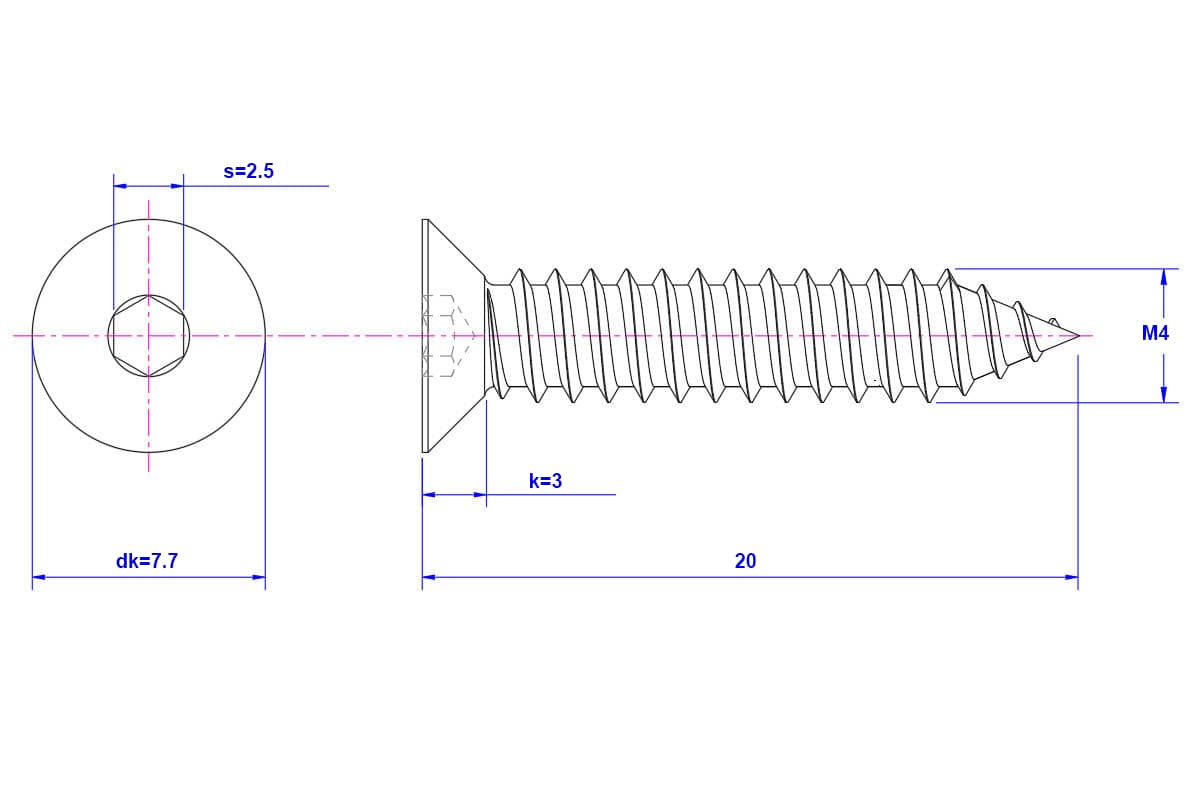Hex-socket-countersunk-Self-Tapping-Screw-M4X20