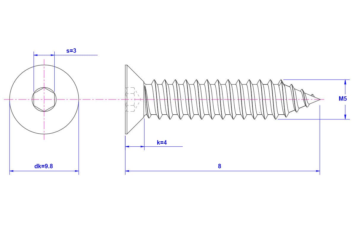 Hex-socket-countersunk-Self-Tapping-Screw-M5X8