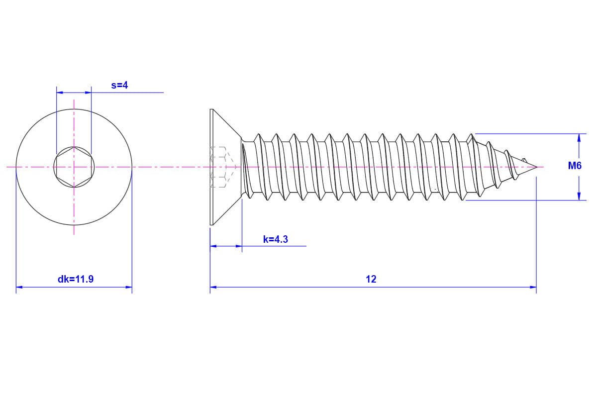 Hex-socket-countersunk-Self-Tapping-Screw-M6X12