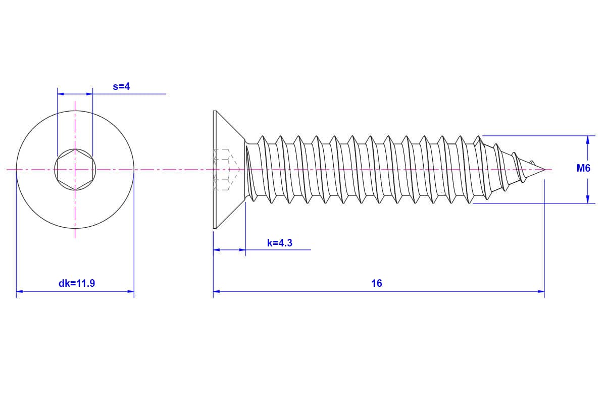 Hex-socket-countersunk-Self-Tapping-Screw-M6X16