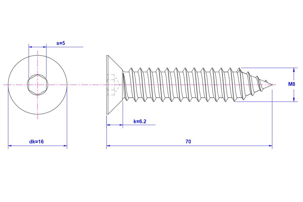 Hex-socket-countersunk-Self-Tapping-Screw-M8X70