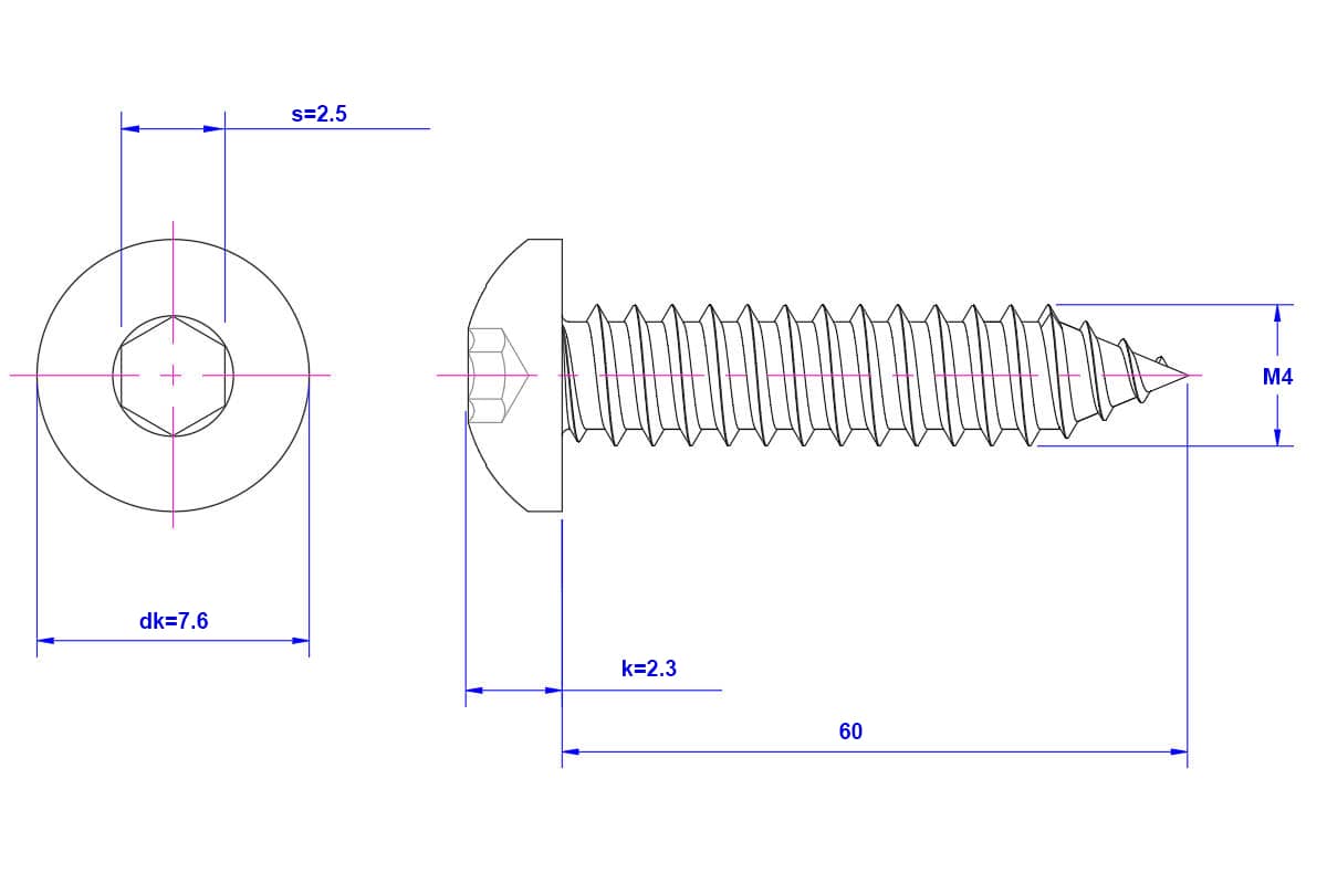 Hexagon-socket-pan-head-self-tapping-screw-M4X60