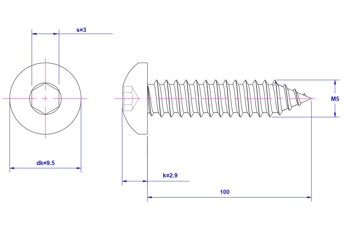 Hexagon-socket-pan-head-self-tapping-screw-M5X100