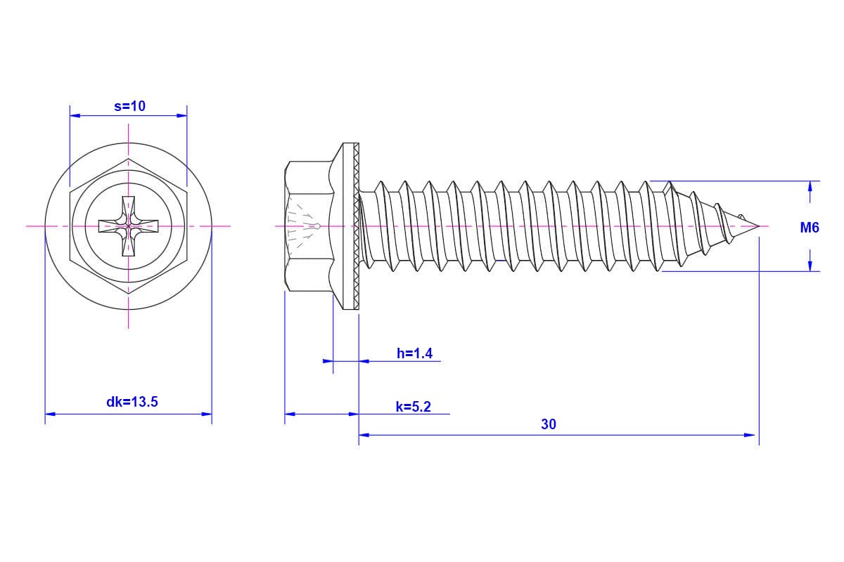Phillips-hex-flange-Self-Tapping-Screw-Serrated-M6X30