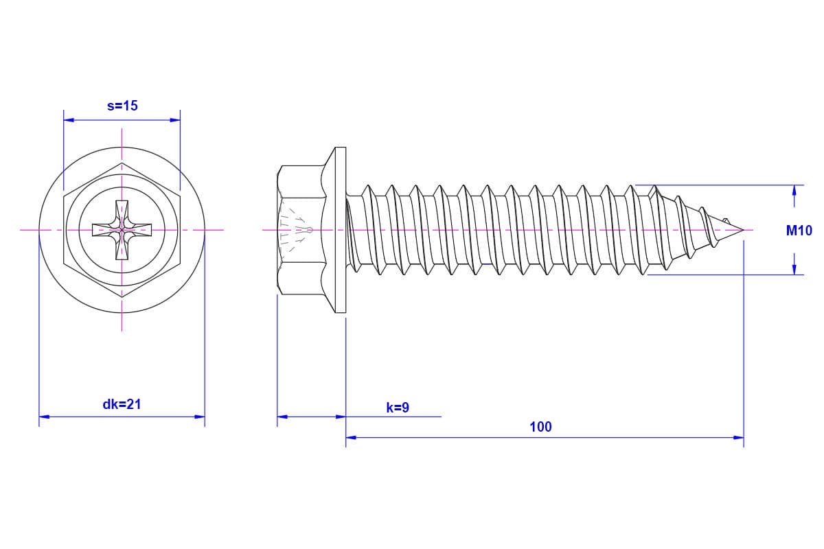 Phillips-hex-flange-Self-Tapping-Screw-M10X100