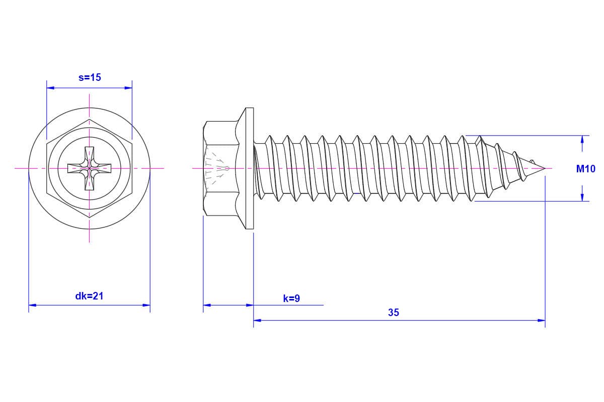 Phillips-hex-flange-Self-Tapping-Screw-M10X35
