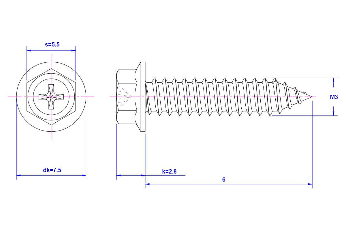 Phillips-hex-flange-Self-Tapping-Screw-M3X6