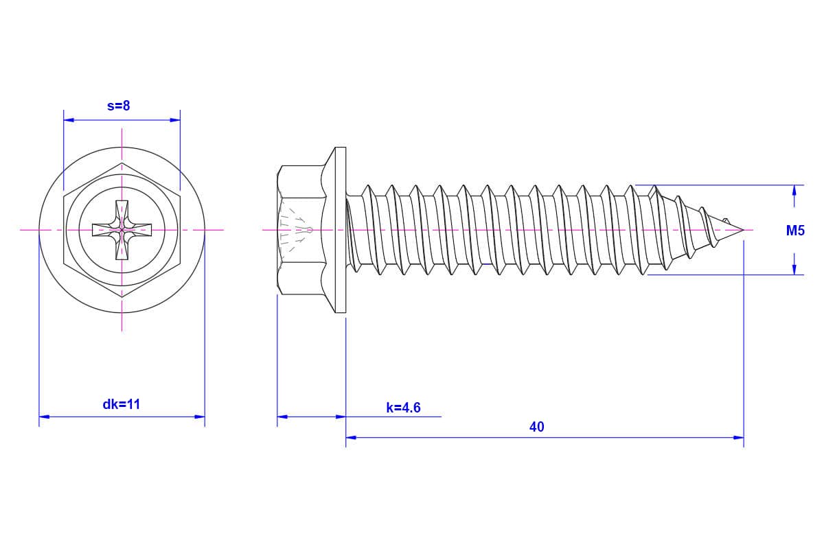 Phillips-hex-flange-Self-Tapping-Screw-M5X40