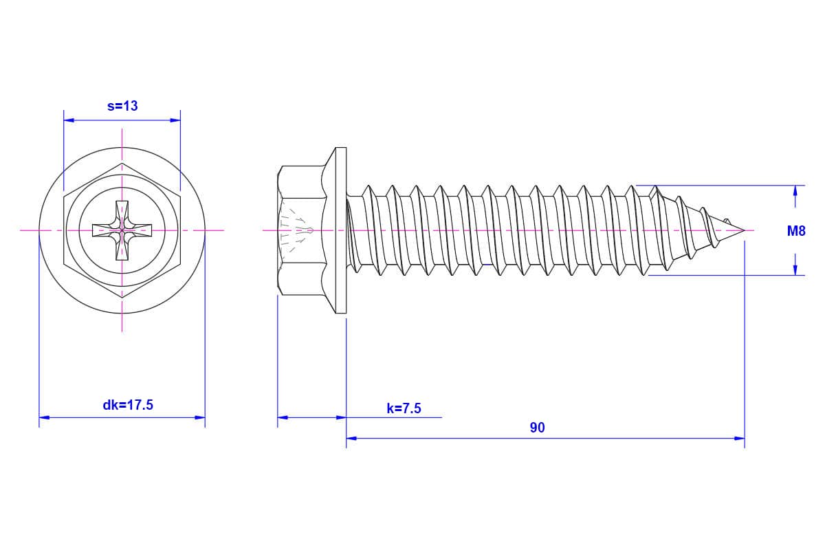 Phillips-hex-flange-Self-Tapping-Screw-M8X90