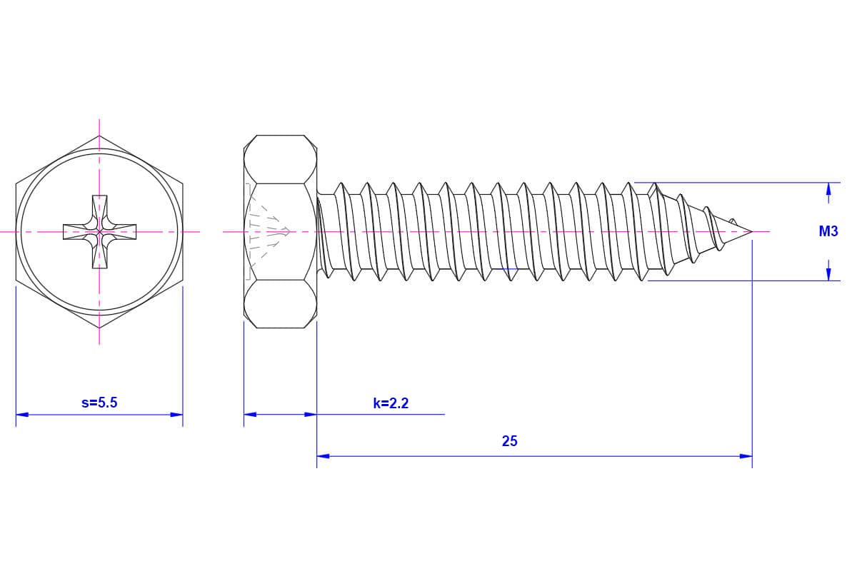 Home Shop Self-tapping screws Phillips Hex Head Self-Tapping Screw 304 - Stainless Steel - Phillips Hex Head Self-Tapping Screw M3X25mm – 304 – Stainless Steel – Phillips hex head Self-Tapping Screw