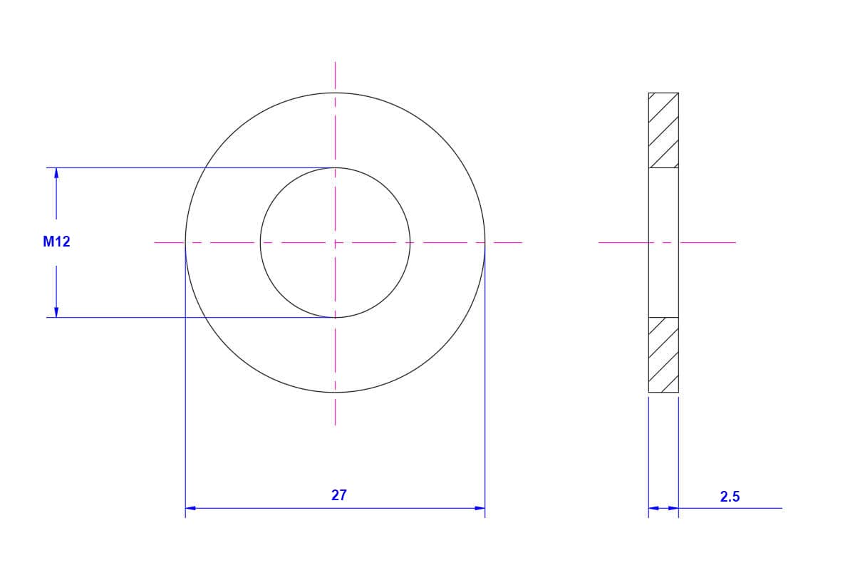 Home Shop Washer Round Washer 304 - Stainless Steel - Round Washer M12X27X2.5 – 304 – Stainless Steel – Round Washer