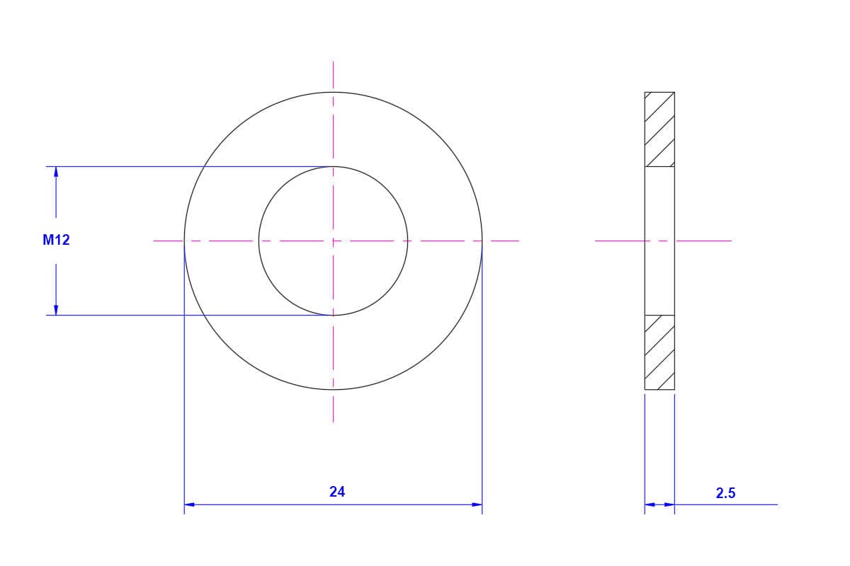Home Shop Washer Round Washer 316 - Stainless Steel - Round Washer M12X24X2.5 – 316 – Stainless Steel – Round Washer