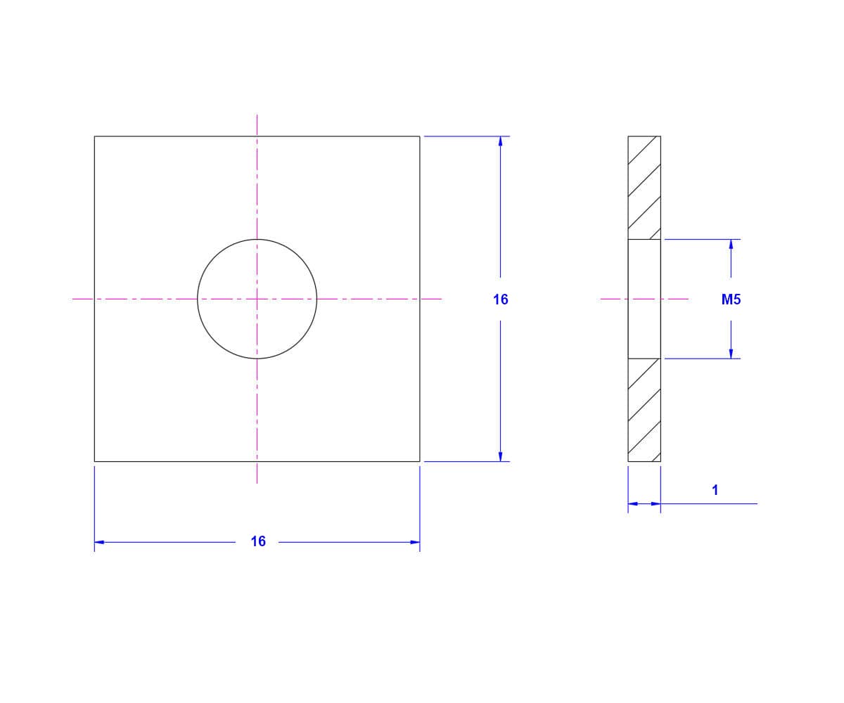 Home Shop Washer Square Washer 304 - Stainless Steel - Square Washer M5X16X1 – 304 – Stainless Steel – Square Washer