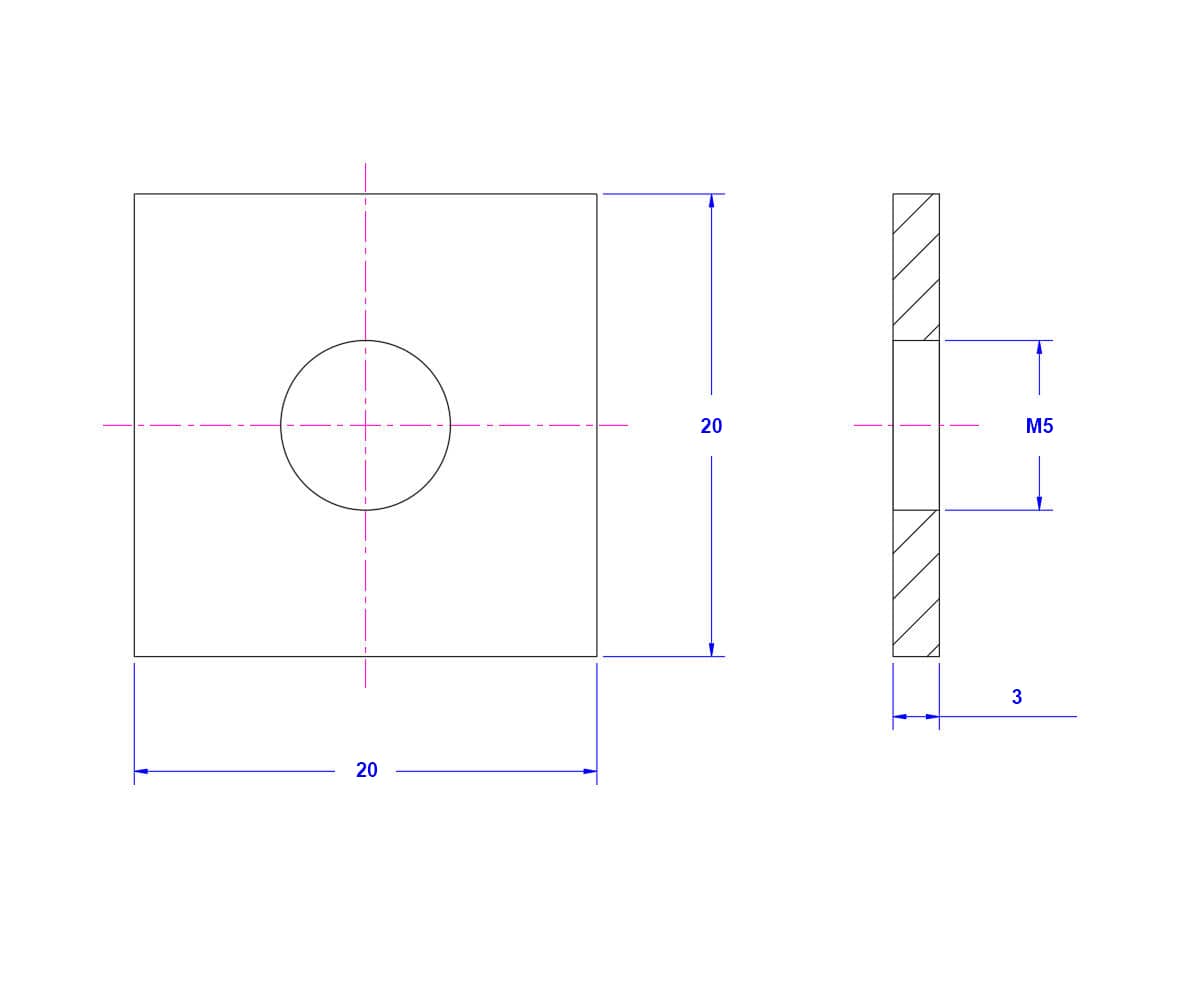 Home Shop Washer Square Washer 304 - Stainless Steel - Square Washer M5X20X3 – 304 – Stainless Steel – Square Washer