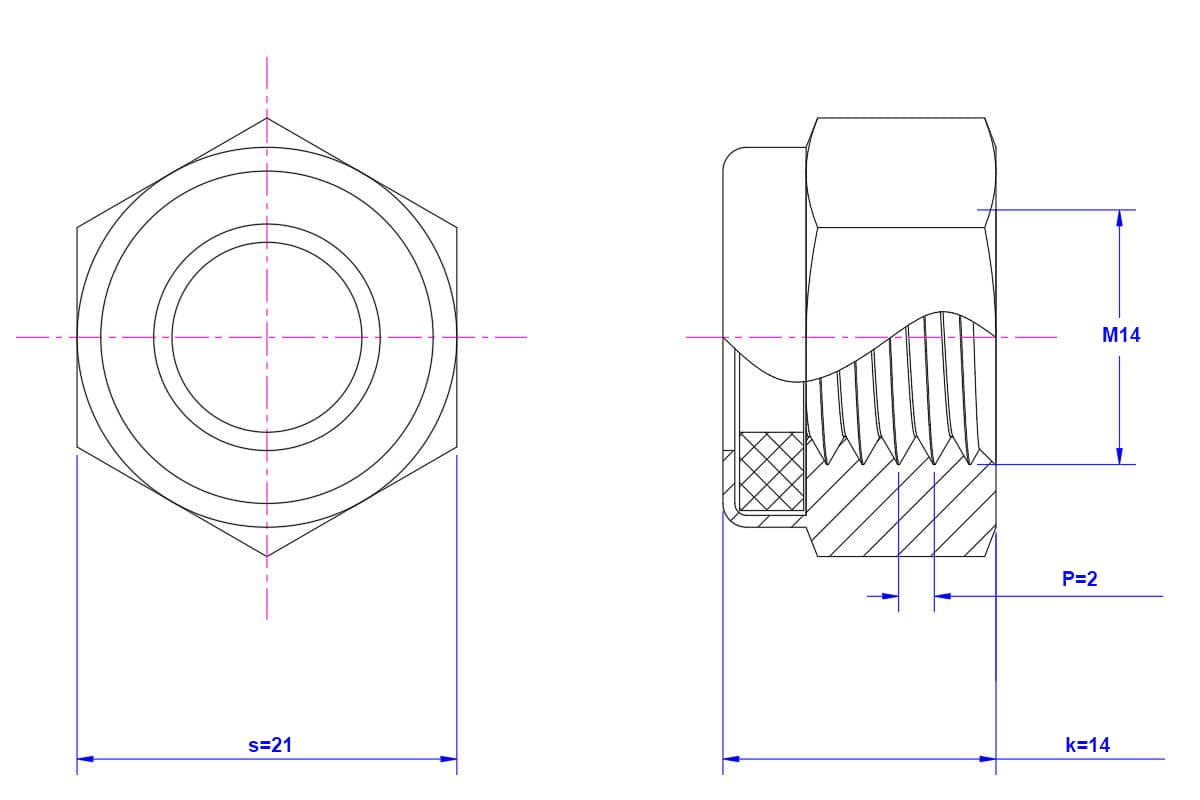 Home Shop Nut Hexagonal Nylon Lock Nut 201 - Stainless Steel - Hexagonal Nylon Lock Nut M14 – 201 – Stainless Steel – Hexagonal Nylon Lock Nut