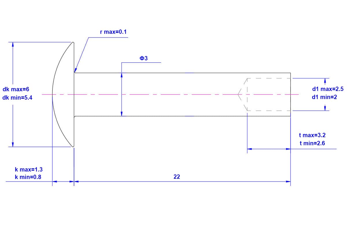 Φ3X22mm – Aluminum – Mushroom Head Semi-Tubular Rivet