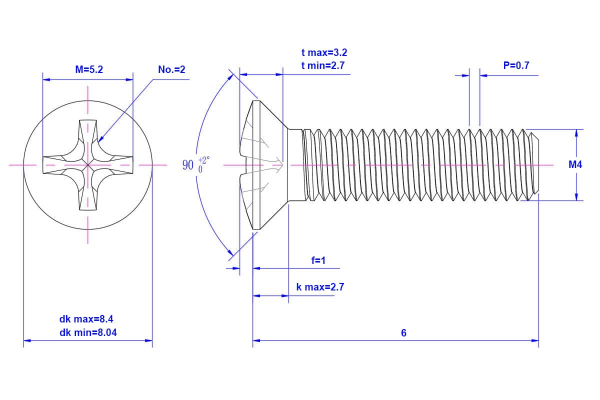 M4X6mm – 304 – Stainless steel – Cross recessed raised countersunk head screw