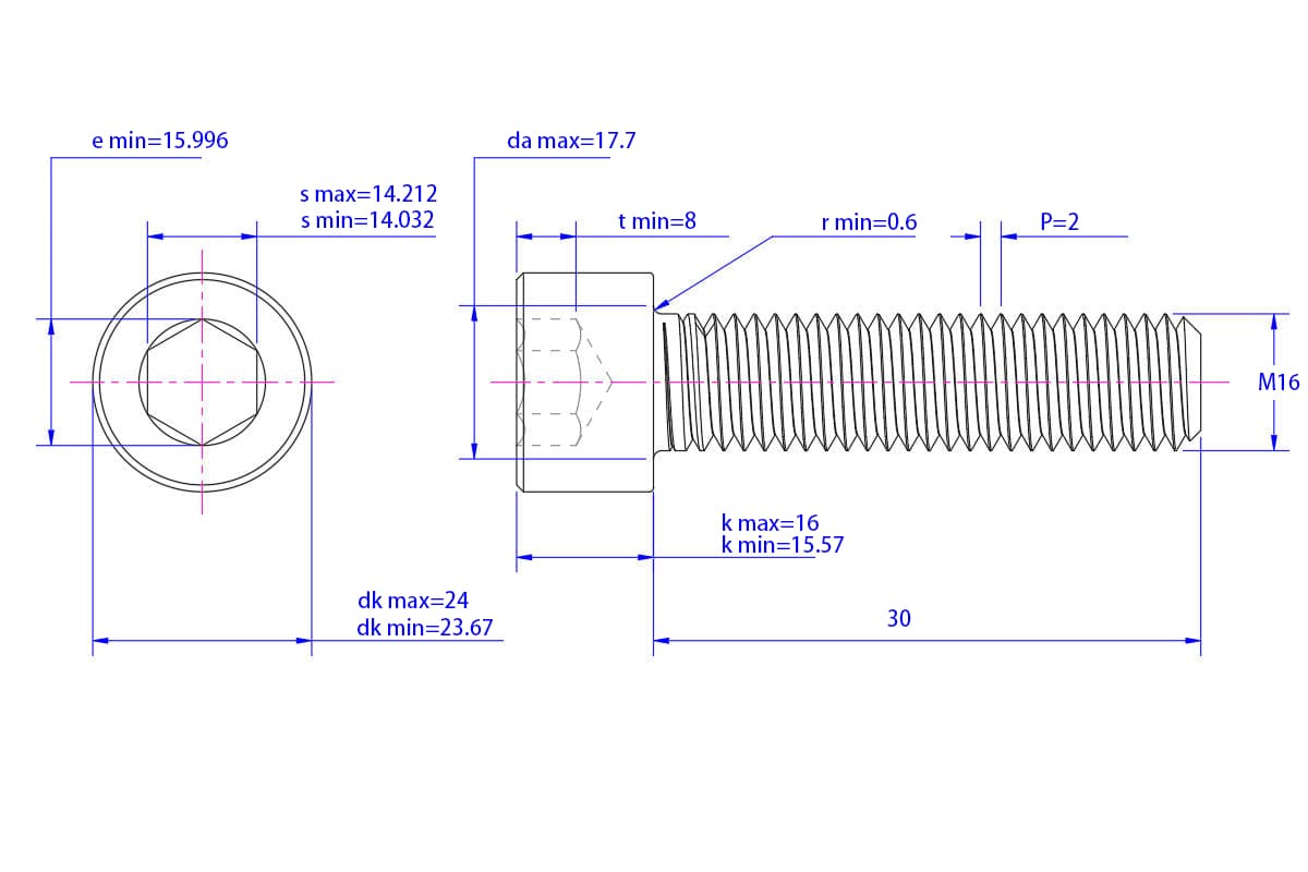 Home Shop Screw & bolt Hexagon socket cap screw Black Oxide - Hexagon socket cap screws 8.8 - Black Oxide - Hexagon socket cap screws M16X30mm – Grade 8.8 – Black Oxide – Hexagon socket cap screw